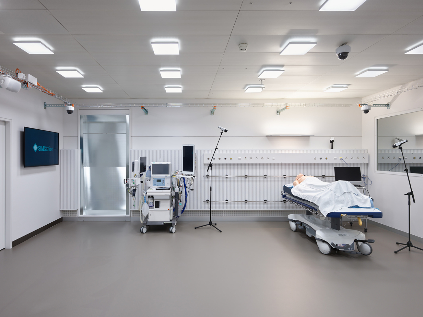 Im Rahmen der Neubelegung des Hauses K wurde im Untergeschoss ein zeitgemässes Simulationszentrum realisiert, welchen neuesten technischen Anforderungen genügt. Durch eine klare Priorisierung der Eingriffe konnten die Räume mit verhältnismässig wenig Aufwand in perfekte Trainingsräume umfunktioniert werden.