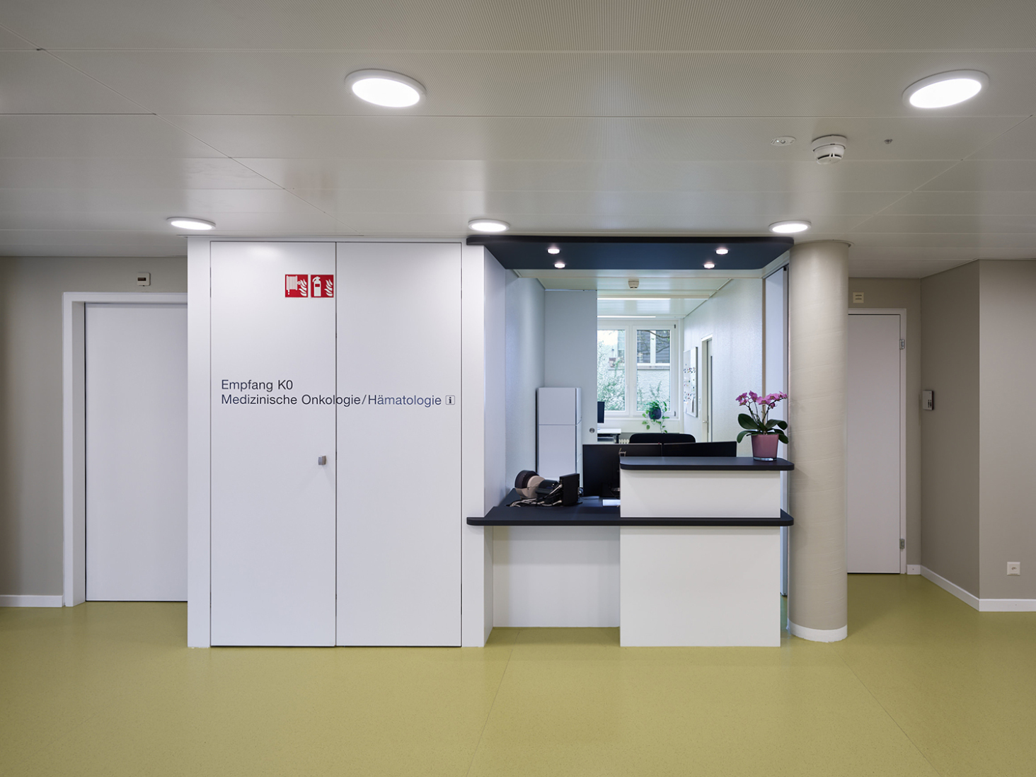 Im Haus K wurde im Zuge der Fertigstellung des neuen Bettenhauses Fläche frei. Das gesamte Gebäude wurde für die Medizinische Onkologie umgebaut und an die neuen Bedürfnisse angepasst. Die Eingriffstiefe unterscheidet sich von Raum zu Raum im Sinne eines kostenbewussten Umgangs mit der Substanz. Der Einbau einer neuen Zytostatika (durch einen Partner) stand im Mittelpunkt der technischen und koordinativen Herausforderungen. Die Gebäudehülle blieb bis auf die Erstellung eines neuen Eingangsbereichs bestehend.