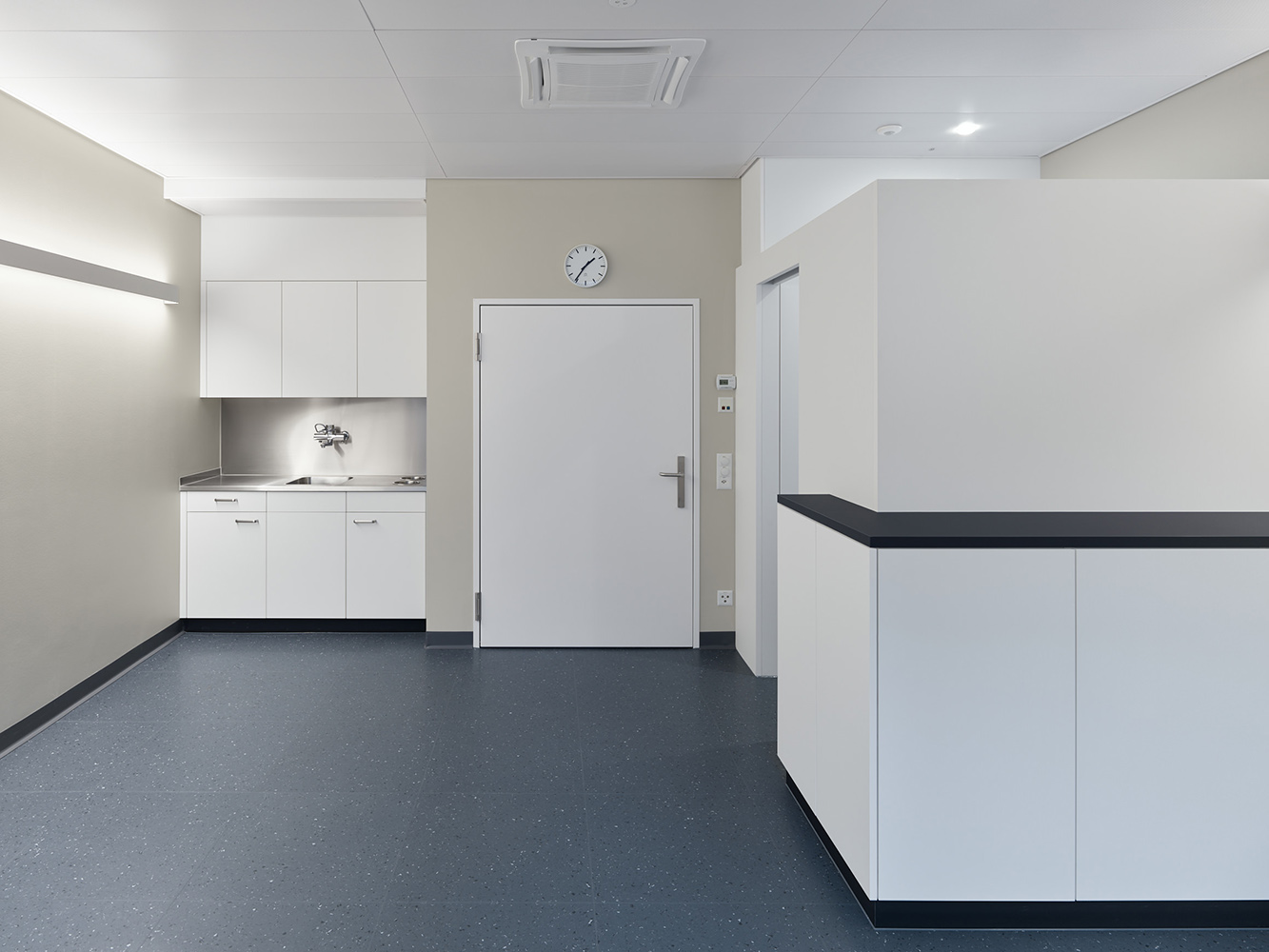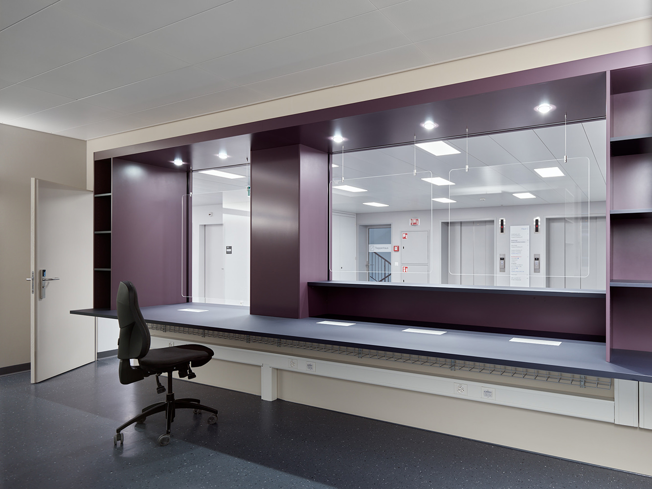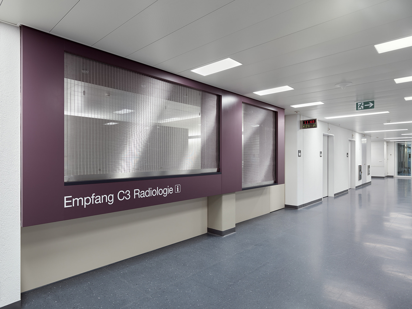 Ab Dezember 2020 begrüsst das Institut für Radiologie und Nuklearmedizin des Kantonsspitals Winterthur seine Kunden im 3. Obergeschoss an gut auffindbarer Lage vis-à-vis dem Lift aus der Empfangshalle. Neben dem Einbau des neuen Empfangs werden die angrenzenden drei Büroräume an heutige Bedürfnisse angepasst. Der neue Ultraschallraum eröffnet Möglichkeiten für innovative Behandlungsmethoden.